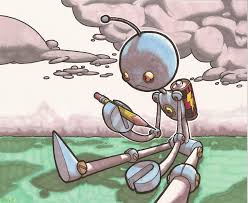 El viejo pescador estaba feliz con su androide, no solo porque era bueno pescando, sino porque lo acompañaba a donde fuera que el valla y hasta le cantaba. Un dia el viejo junto con su androide salieron a pescar como de costumbre, una gran tormenta los sorprendio en el mar, de pronto una gota de agua callo en la cabza del androide , y luego vino otra y otra, el agua se habia metido en el inerior del androide y este habia hecho corto circuito.